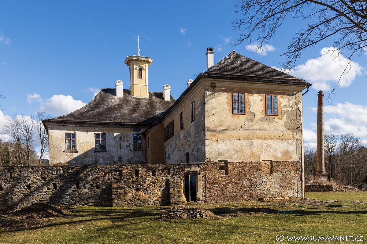 Původní tvrz ze 14. století byla ve století šestnáctém přestavena na renesanční zámek Janem Bohuchvalem z Hrádku. V 18. století byl zámek upraven v duchu barokním a poslední přístavby jsou z dob klasicismu.