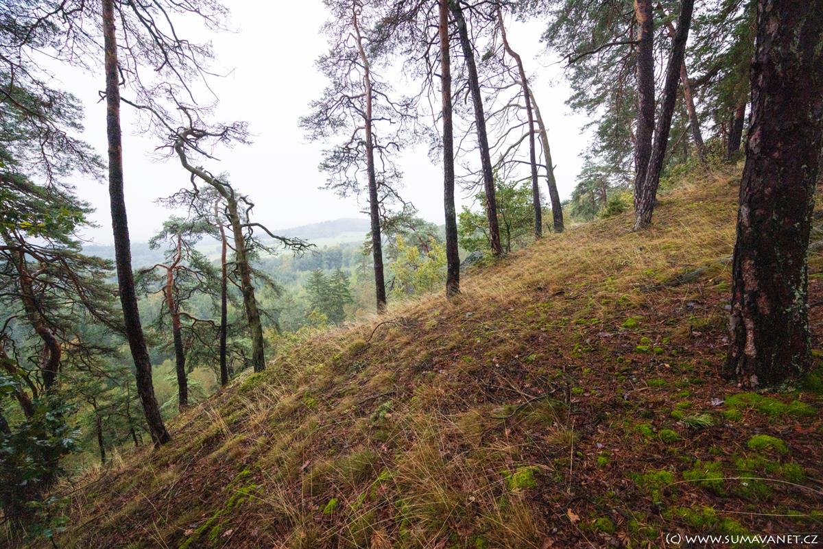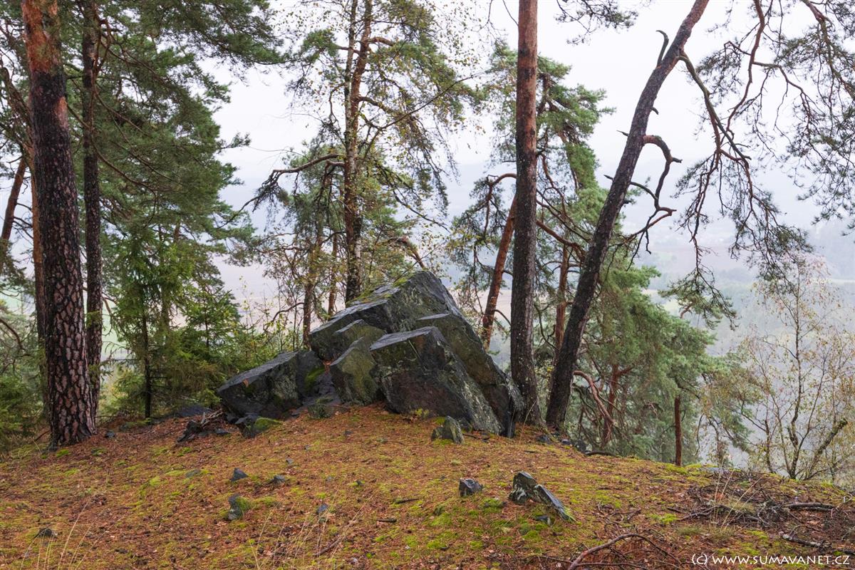 Ze strmé skály se otevře nádherný výhled na Klatovy.