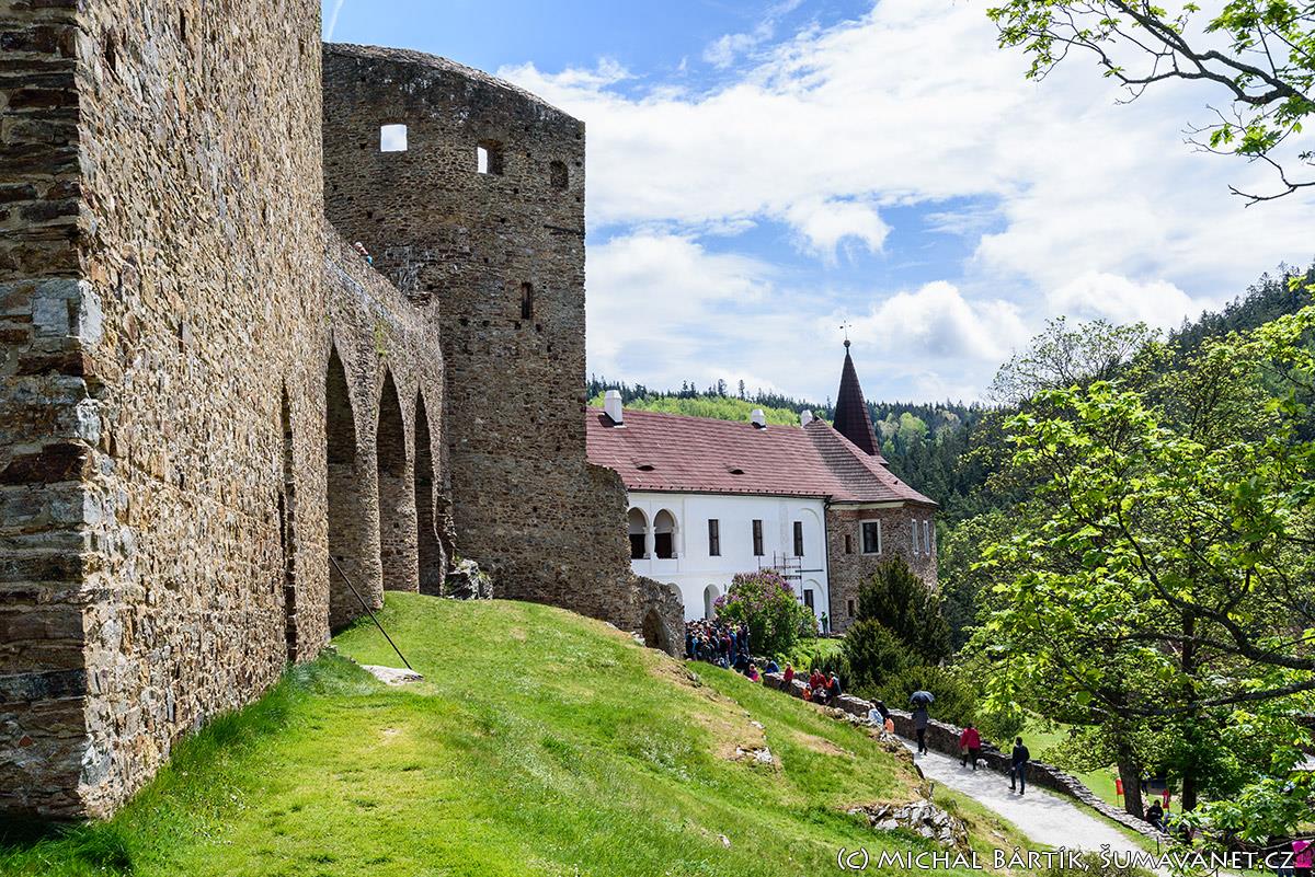 Raritou je světově unikátní kamenný most spojující hmotná torza paláce zvaného Rajský a jeho protějšku - přední věže. Návštěvníky zaujme i pozdně renesanční zámecké křídlo. Na hradě byly svého času uschovány korunovační klenoty Království českého, aby nemohlo dojít ke korunovaci Jiřího z Poděbrad na krále.
