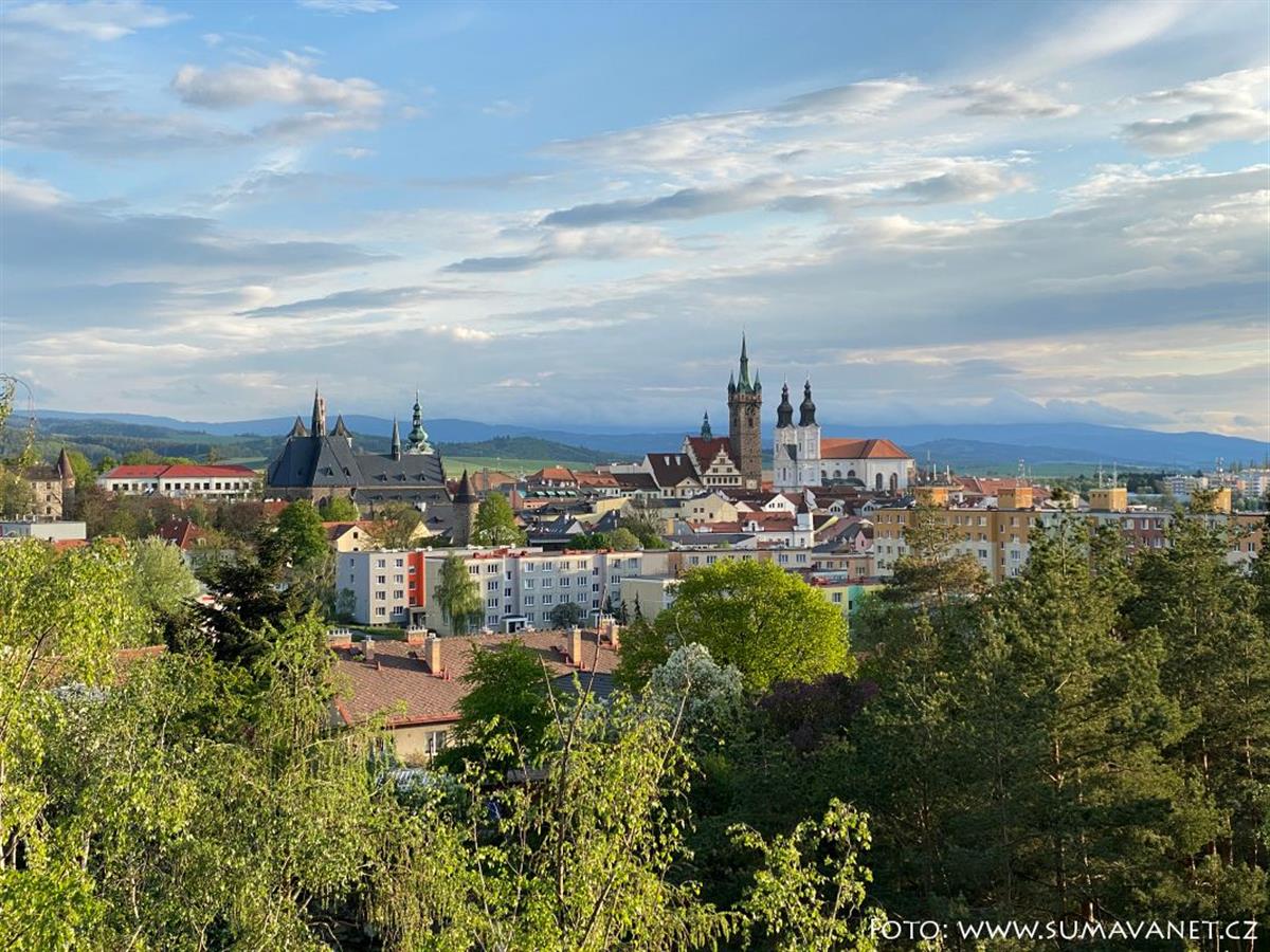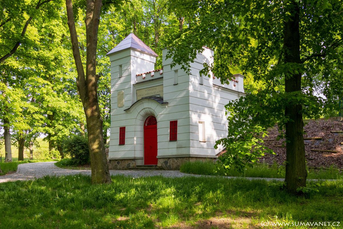 Mercandinovy sady, molo rybníka → Sady Mistra Jana Husa → Židovský hřbitov → Křesťanský vrch → Šibeniční vrch → Železniční nádraží Klatovy → Kostel sv. Martina na Hůrce → Mercandinovy sady